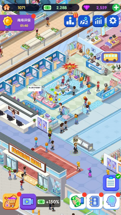 在这款游戏中,你将经营一家超大型商场,超过 32 家店铺等你来管理,招募店铺经理,培养导购员,白手起家,在城市黄金地段打造一条充满时尚气息的商业街,经营各种高端时尚店铺,设计独特的购物体验,吸引无数时尚爱好者的目光!升级你的店铺,解锁不同的商业设施,从奢侈品牌旗舰店到潮流咖啡馆,一切尽在你的掌控之中。游戏玩法多样,充满挑战。你不仅需要规划商业布局,还要根据顾客需求调整运营策略,举办时装秀,开展促销活动,提升商场人气。在激烈的商业竞争中,巧妙管理你的资源,扩大你的店铺规模,打造属于你自己的时尚帝国。