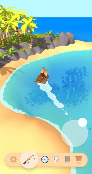 2、仔细观察操作界面的下方,你可以操控着木筏去抓鱼,利用工具抓鱼更快。