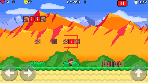 4、继续用底部按键操作角色,注意避开危险,顶红色问号砖块可能有惊喜。