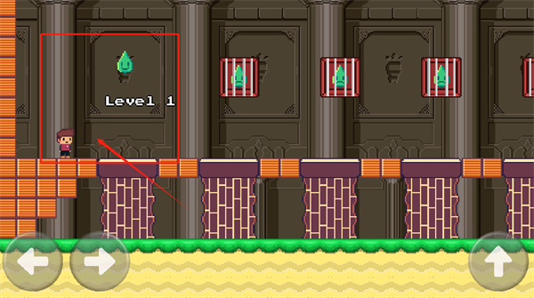 3、用底部三个按键控制角色左右移动和跳跃,收集金币和道具闯关。