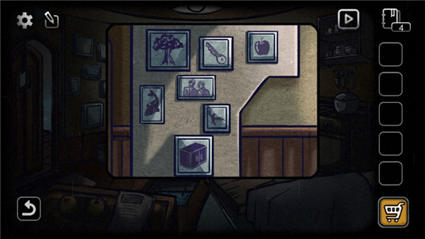 记住图标顺序,回到房间。点击电视左边的照片墙。(树、鸟、柜子、人)