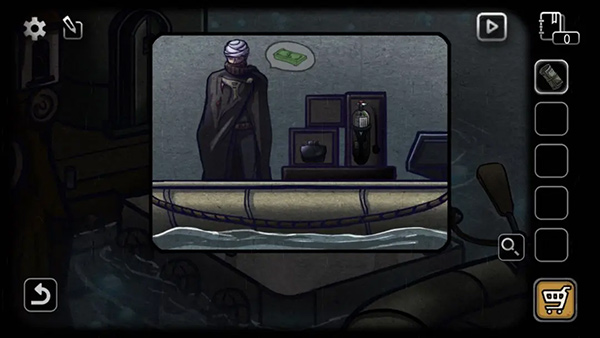 点击旁边的救生筏,把钞票交给商人,获得潜水设备。