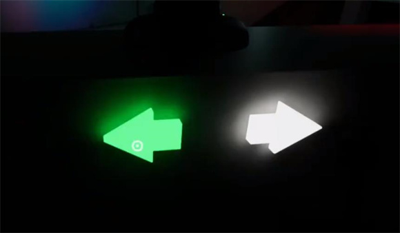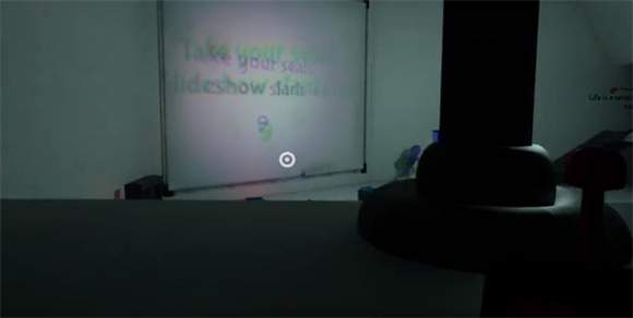 5、按完后来到大厅的二楼将红色灯泡的投影移动到屏幕中间
