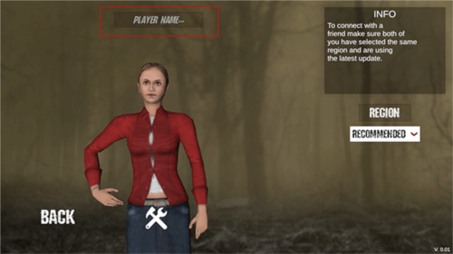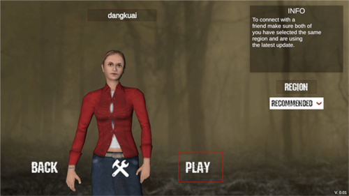 3.需在人物上方取好昵称才会显示PLAY,右方有地区选择,联机需处于同一区域