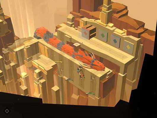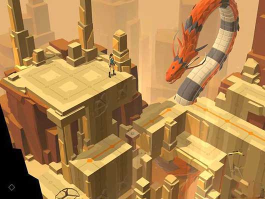 顺利来到场景二,我们不要因为巨蟒的再次出现而慌了阵脚,事实上在这个关卡巨蟒是不会被杀死的只能被击退,所以小伙伴们可以见怪不怪了。首先我们要扳动黑色机关按钮,让处在黑色移动平台上的毒蛇向前方移动,这样我们可以顺利击杀挡在我们面前的第一条毒蛇。但是第二条毒蛇依然正对着我们即将走过的路线,思考一下发现只能用巨蟒的袭击干掉它。将黑色机关扳回原位,我们再走到巨蟒的攻击路线上,成功吸引巨蟒的注意后后撤一步,这个时候巨蟒会将眼前道路上的所有东西吞噬干净,待巨蟒走远后跳下平台即可。