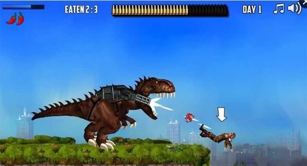 2,在游戏中,你将化身为觉醒的霸王龙,一路冲向关卡终点