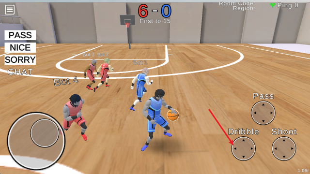 3、持球之后,点击右侧的Dirrble可以进行运球过人。