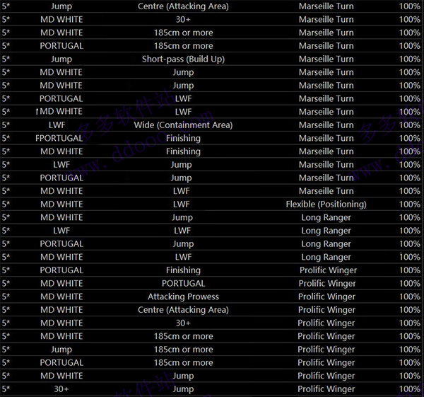 记得在内测阶段已经有玩家在国际服合成C罗了,当时的公式为LWF+跳跃+葡萄牙(全5星球探)。但近几天翻查了下国外合成公式,发现合成顶级球星的公式多到令人发指的地步。所以以此类推只要三个5星球探 (一个定律全5星必然是黑卡球员)与你想要的球员有关基本就能合出来。如下图Portugal=葡萄牙、Marseille Turn=马赛回旋,那么葡萄牙+马赛回旋+185就是C罗。大致看了下C罗的公式,100多种吧!所以合成球星不难,难在获得5星球探。再举例梅西公式:巴塞罗那+RWF+灵活、巴塞罗那+左脚+马赛回旋(5星5星)。