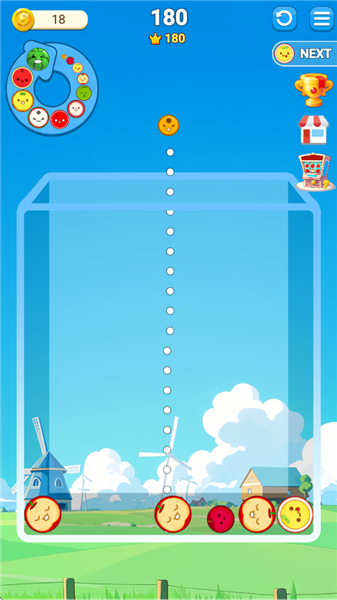 4、精准放置,高效合成:拖动水果时瞄准相同水果相邻位置,借助虚线判断落点,避免边缘扎堆。