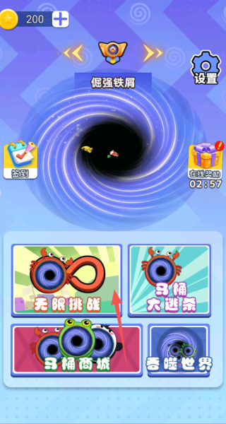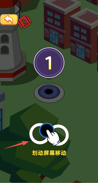 2、我们在选择�� 限挑战进入之后,直接点击然后滑动屏幕,控制着黑洞进行移动。
