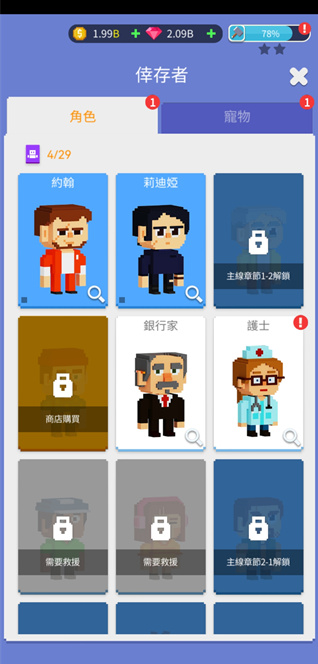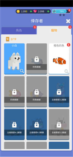 6、游戏中有量的宠物和角色可以解锁,大部分都不可以使用金币和钻石购买,只能在关卡中进行解锁。