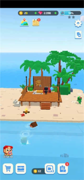 1、首先我们进入建造英雄中文版游戏中,刚开始玩家只有一个没有盖好的房子。