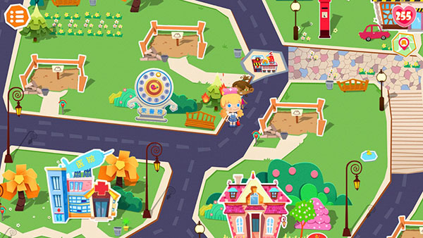 3、轻轻拖动糖糖开始在街道上漫步吧!恩,迷路了?打开右上角的“地图”就能定位哦。
