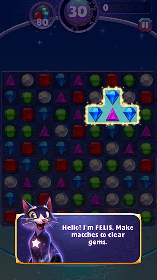 2、玩法非常简单,与经典三消玩法类似,通过三个或以上的相同宝石来进行消除;