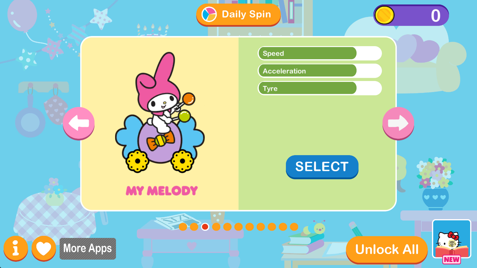 凯蒂猫竞速冒险2官方最新版下载是一款以凯蒂猫为主题的休闲赛车游戏。游戏中我们将会走进凯蒂猫的房子,在卧室、浴室、厨房等多样场景中展开趣味休闲的赛车挑战。挑选心仪的角色,驾驶特别的“赛车”,快来下载尽情享受这场独特的竞速冒险。