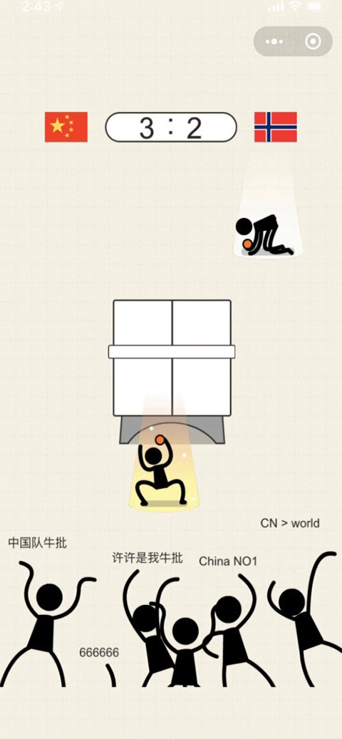 首先《乒乓球王者》会为玩家自动匹配一个国家的对手,这个对手应该是电脑虚拟的,并不是真实玩家。