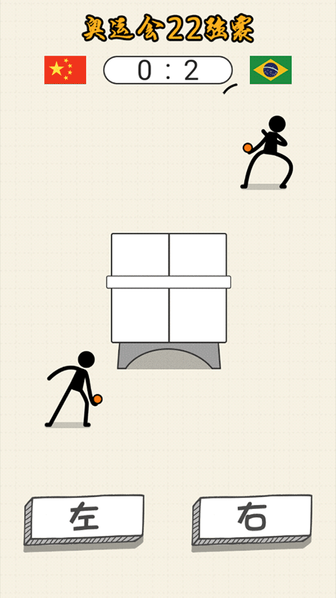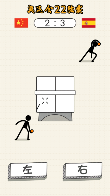 然后游戏开始,《乒乓球王者》的操作只有左右两个按钮,看对手打过来的乒乓球落在左面案板还是右面案板,落在左面就马上按左按钮,落在右面则马上按右按钮。