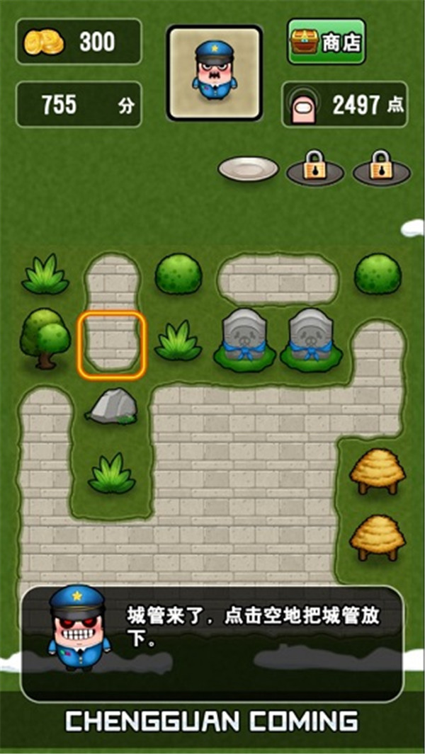 城管会定期巡逻,干扰布局,玩家需灵活应对。