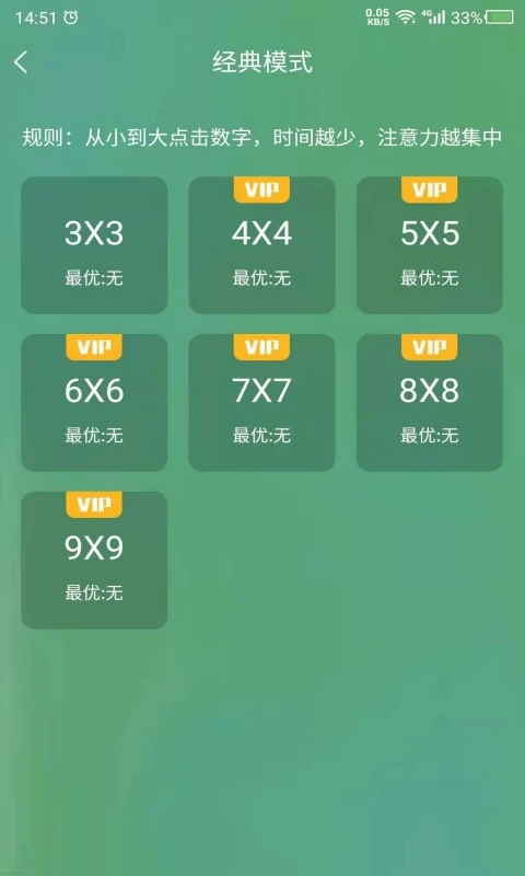 舒尔特方格是全世界范围内公认简单、有效也是科学的注意力训练方法。在规定时间内按顺序从小到大点击数字,所用时间越短,注意力水平越高。