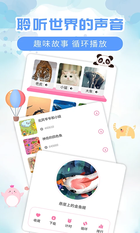 热门好听的儿歌童谣、哄睡音乐,经典有趣的睡前故事、安徒生童话故事、成语启蒙故事,还有古诗词朗诵、三十六计故事、十万个为什么等丰富的有声内容,给孩子更多想象的空间,激发宝宝求知探索的欲望。