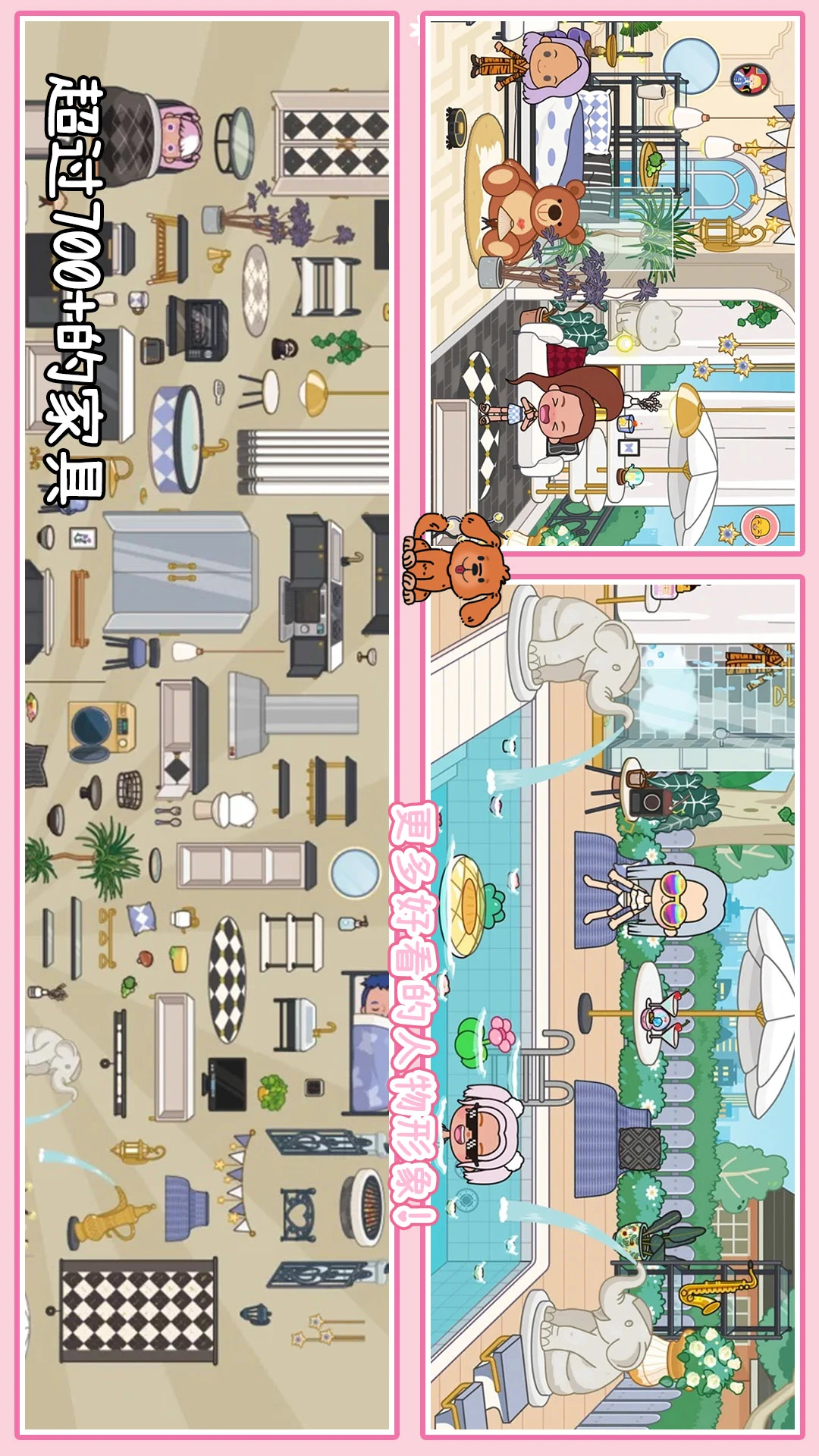迷你托卡城堡设计,在新的城堡里,你拥有自己的新家,你可以和你的好朋友一起玩耍,认识新的邻居并邀请她们来你的城堡玩耍! 你可以随时设计你的新家,在楼下的家具店,挑选你喜欢的家具,合适风格大小的家居用品,来装饰你的公主房吧! 楼下的活动中心每天都有不一样的活动,举行一个大型的排队,组织一次郊外野餐,你也可以带上你的朋友一起来参加哦! 还有大型的购物中心美妆、美食、玩具应有尽有!舒服的顶楼户外SPA享受,欣赏城堡的夜景,带上小伙伴拍上几组美美的照片吧! 还有更多的场景,都有不同的的充满惊喜和欢乐的情节,快来尽情享受吧!
