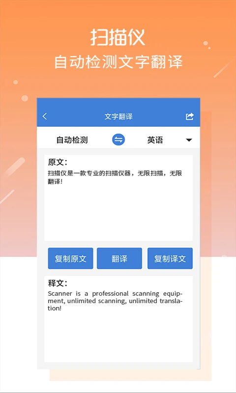 《扫描仪》您的随身拍照扫描仪、文件扫描、扫描翻译、扫描文档、收据、户口本、毕业证、照片、驾照等等。