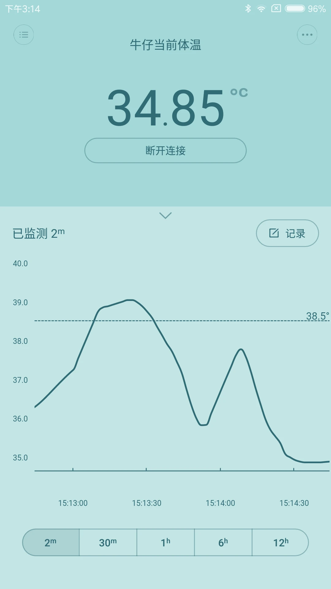 连续监测温度变化,需要与“秒秒测无线智能体温计”配套使用。