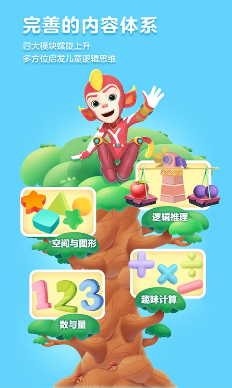 启蒙阶段200+节正课,共1000+精品互动,包含数与量、加减计算、几何与空间、逻辑思维4大主题,实现数学启蒙全覆盖。