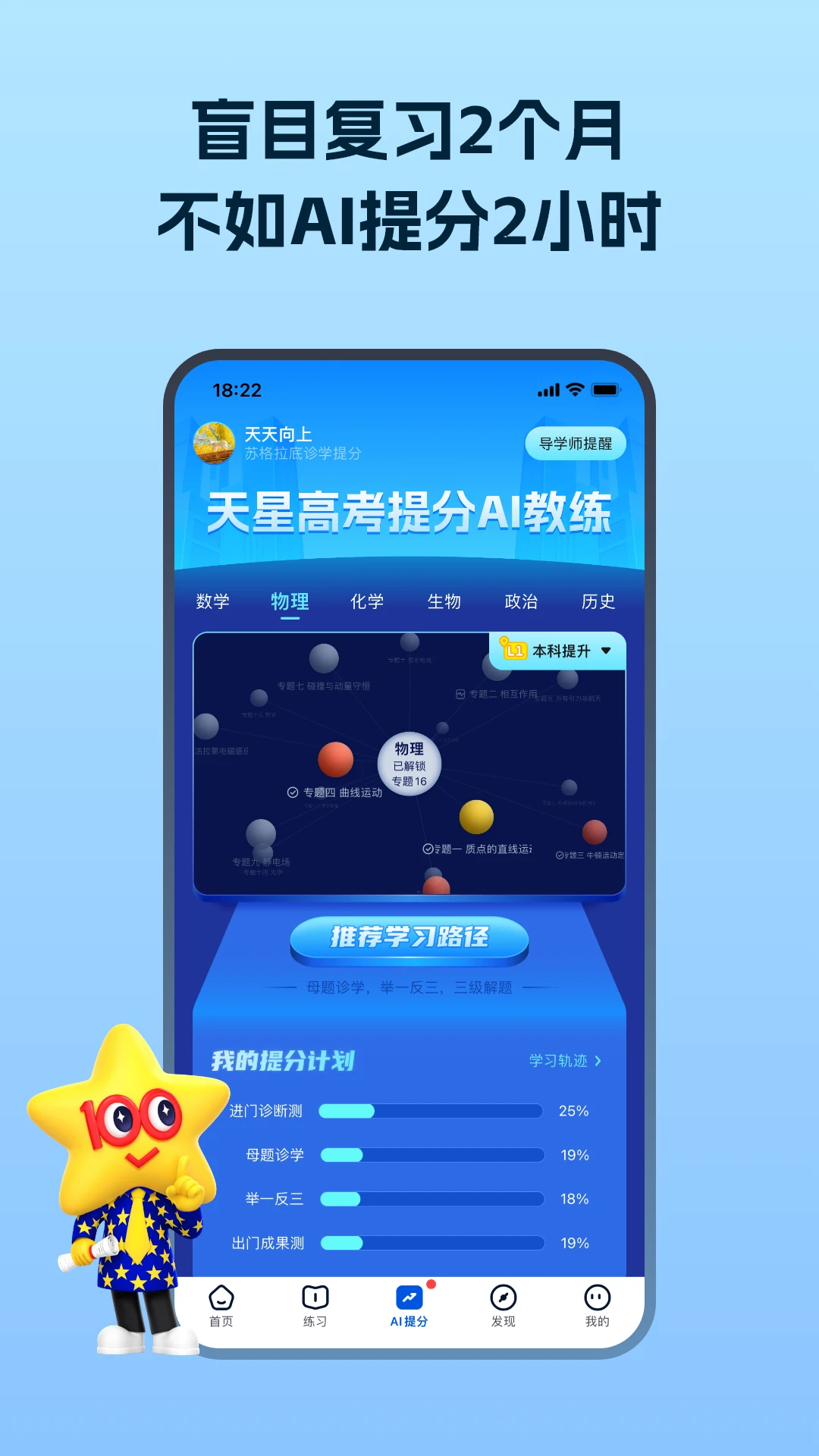 未来脑考试在线AI智能测评,能够快速锁定薄弱点,合理规划你的专属学习路径,借助教育测量理论和计算机无尽算力,深度诊断,量化数据,让你更清晰了解自己,定制个性化学习方案,提分更高效!