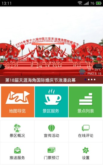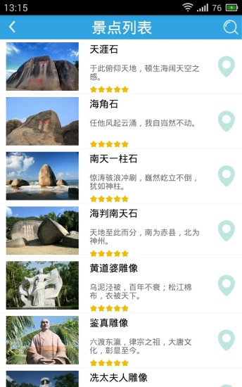 天涯海角游览区智能导游APP集景区地图浏览、景点查询、景点推送、路径导航、在线互动交流等功能于一体,为游客提供图形化、可视化、自动化的智能导游服务,为游客提供高质量的旅游服务。