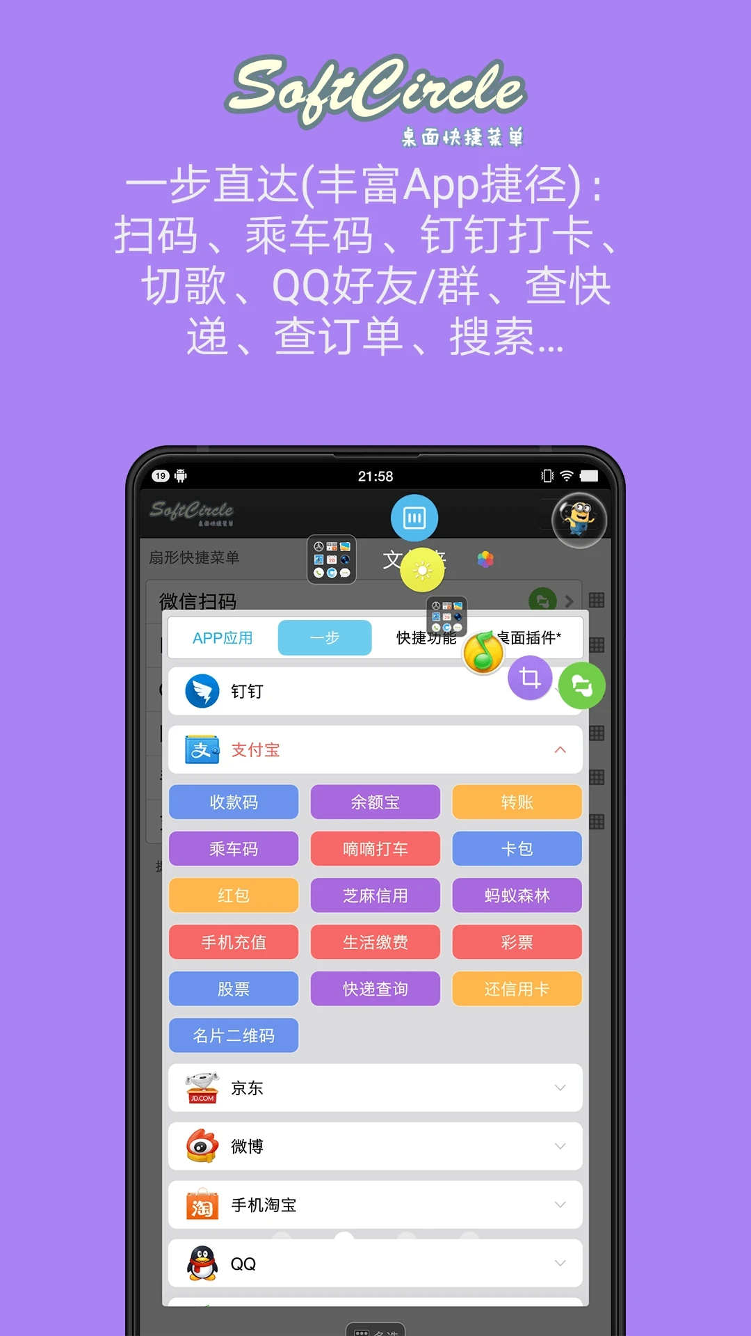 一步直达(丰富App捷径):扫码、乘车码、钉钉打卡、切歌、QQ好友/群、查快递、查订单、搜索…