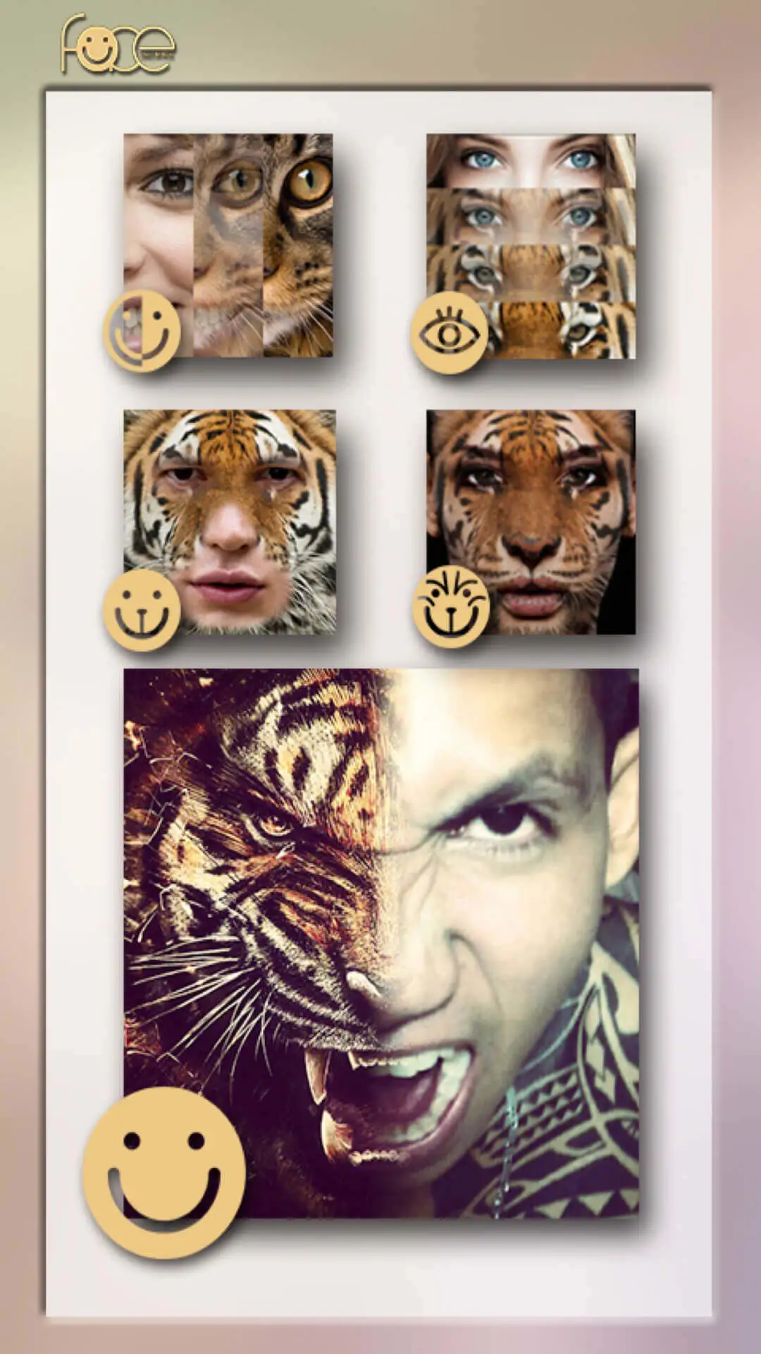 ★ 我们提供了10余种动物脸供你选择,包括老虎、狮子、猩猩、猫、猫头鹰等,并将持续更新;