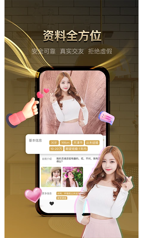 还在为朋友圈狭窄找不到对象发愁?担心网上交友遇虚假信息、“玩一玩” 的人?牵手记婚恋 APP 精准定位 “以结婚为目的” 的核心需求,用科技 + 严审双重保障,帮你跳过繁琐筛选,高效匹配同频伴侣,彻底解决单身烦恼,轻松迈向幸福婚姻!