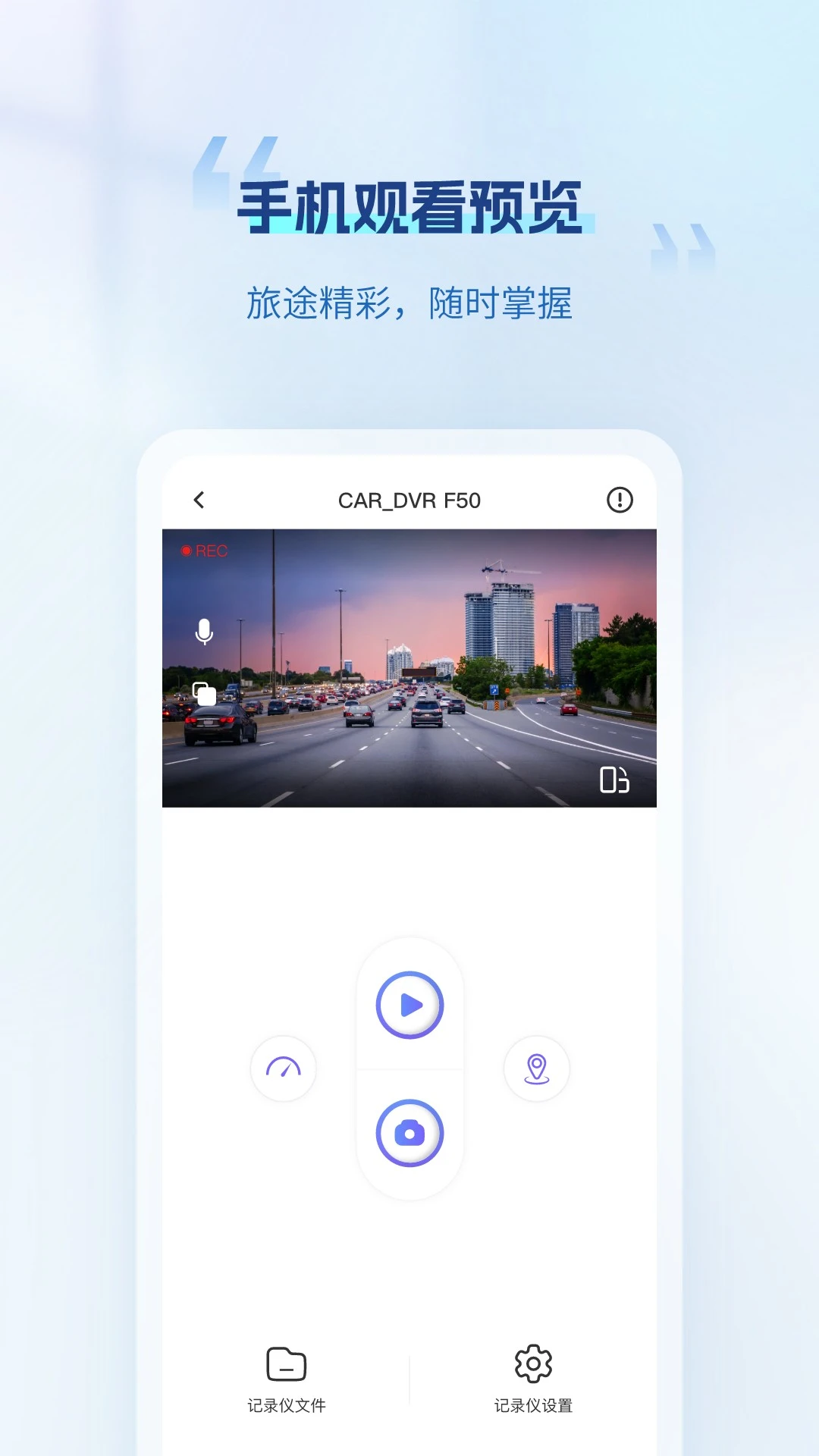 1. 能够wifi连接记录仪,进行实时预览,进行拍照,并可以查看记录仪内的历史视频和图片,进行播放和查看,并对其进行下载,
