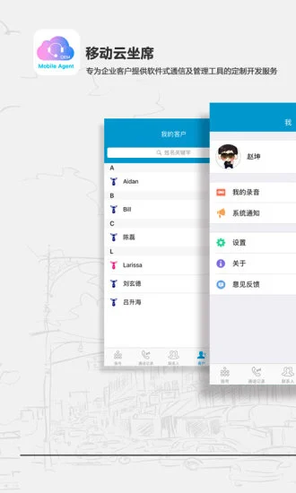 移动云坐席是一款面向企业内部的,支持定制开发的移动终端通信应用。