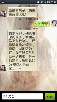 活泼可爱卖萌女仆陪你聊天,智能回答,可进行天气,笑话,知识查询。全新可爱界面,满足你的开放性需求。模仿微信聊天界面,功能全部开放,免费使用.可以快乐的玩耍咯