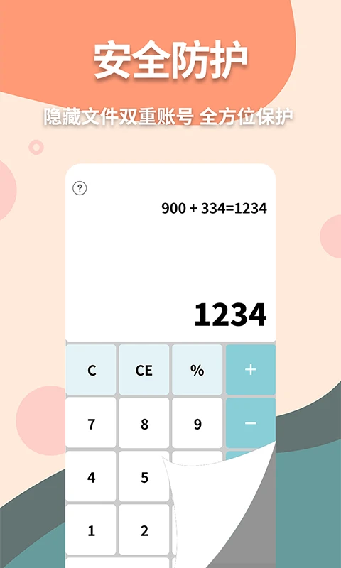 伪装计算器,是一款可以帮助您保护私人照片、视频、文档加密,保存各种账号密码,记事本的软件,可以完美地保护你的隐私,表面上看这是一款标准计算器,在计算器上输入密码即可访问您的私人文件,安全方便,即使手机被盗,别人也无法打开你的文件,再也不用担心隐私被泄露。