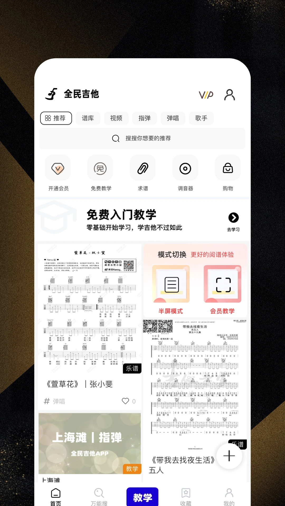 如果你是一个吉他爱好者,那么你一定会喜欢这个全民吉他APP。我们是一个专门为吉他爱好者设计的教学,视频以及乐谱库平台,它提供了各种各样的吉他教学视频和吉他谱,让你可以轻松地学习和练习吉他技巧,变成吉他大神哦,当然我们还在持续迭代更新更多好用的功能。