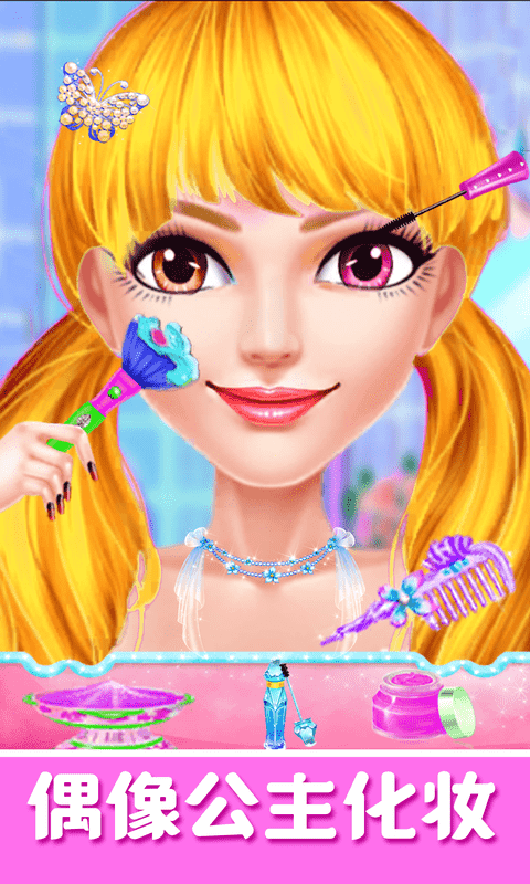 偶像女神美容店是一款有趣的模拟化妆搭配APP,秀出你的时尚技巧和想象力给公主画一个漂亮的妆容和选择一套美丽的服装。