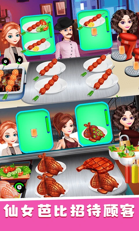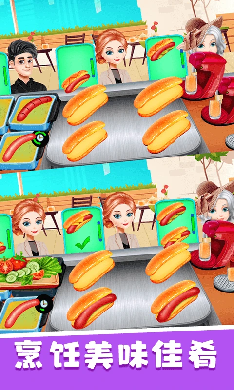 应有尽有。简单在萤幕上拖拽点击,你就可以体会到制作天下美食的快乐,还能学会时间的搭配利用。招待各式各样的顾客,