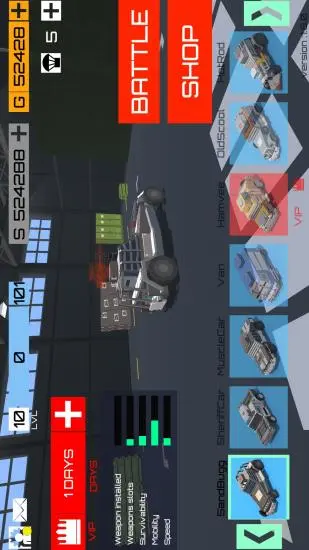 这是一款可以同时使用8支武器的游戏,这是一款带有各种武器插槽的游戏,你可以同时射击火箭,激光,等离子枪和火炮,你可以选择汽车,拿起枪支并生存,喜欢生存挑战吗?那就快来尝试吧!