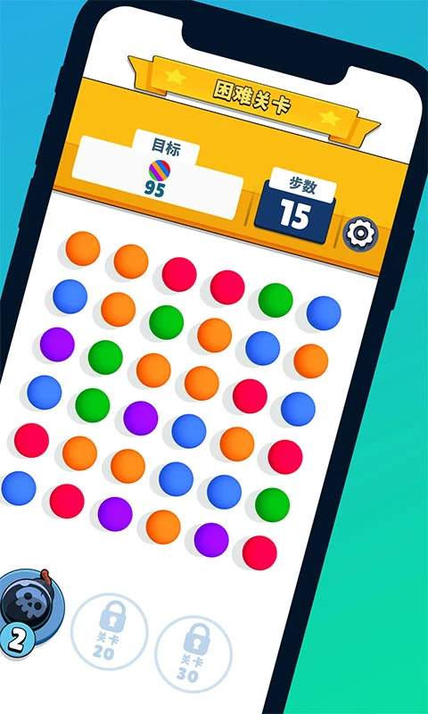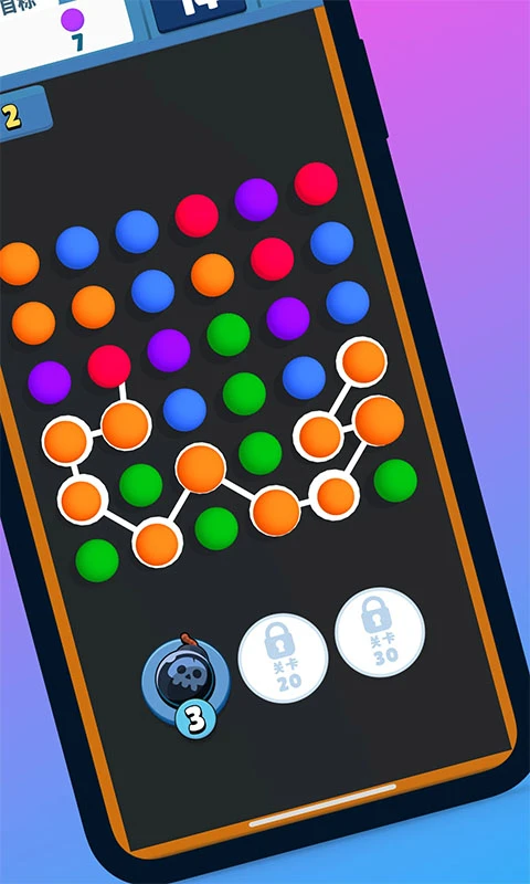 点击并拖动手指来连接相邻的同色球球,被连接的球球即可消除!