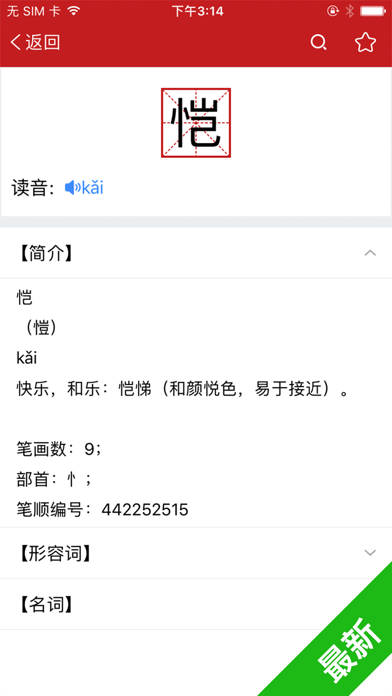 汉语词典、成语词典、汉语字典最新最全版! 特色功能: 1、提供部首检字、拼音检字、直接搜索等多种检索方式 2、对每个汉字都有基本解释,有的同时拥有详细解释 3、针对词语提供多种释义及近反义词 获取订阅内容: - 永久告别广告打扰 - 无任何功能限制 * 我们的标准订阅选项为: 提供VIP连续包年的订阅选择。订阅期间可永久可享受无广告纯净版、无任何功能限制,获得更多功能优先体验权。 * 在您确认购买时和每个续费周期开始时,我们会从您的 iTunes 账户中收取订阅费用。 包含免费试用期的订阅将自动续订为付费订阅。 在免费试用期结束前至少 24 小时,您可以在 iTunes 设置中取消您的订阅或免费试用。 取消订阅将会在当前订阅周期最后一天后生效,一旦取消订阅生效,您的订阅服务权限将失效。 隐私权政策: https://document.novapps.com/v1/document/5f33614f4fa24b3f0cb2c50b 用户协议: https://document.novapps.com/v1/document/5f336151a843612590f9fd87修复了已知bugs