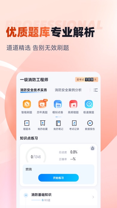 一级消防工程师考试聚题库——精准备考利器 助力通关国考证书 备战一级消防工程师资格考试?本APP深度整合最新考试大纲与核心资源,提供真题实战、系统练习、视频精讲一体化方案,助您高效攻克《消防安全技术实务》《综合能力》《案例分析》三科难点。 核心功能特色: 真题模拟考试 - 海量题库:收录近十年一级消防工程师考试真题及权威预测卷,严格依据应急管理部考试大纲命题。 - 全真模考:高度仿真考场环境,支持分科目或三科联考,限时答题、智能阅卷、即时生成成绩分析报告。 - 实战提能:熟悉考试题型(单选/多选/案例分析)、难度分布及时间压力,精准定位薄弱环节,提升应试策略。 系统知识点练习 - 科学分类:按三科核心模块精细划分: - 技术实务:建筑防火、消防设施(报警/喷淋/防排烟/气体灭火)、电气防火、风险评估。 - 综合能力:法律法规、消防管理、设施检测与维护、安全评估。 - 案例分析:建筑防火设计审验、设施故障诊断、安全管理漏洞排查。 - 靶向训练:支持按章节、高频考点、易错点专项练习,题目覆盖90%以上考点,强化理论与实务衔接。 高清视频课程 - 专家精讲:特邀消防工程师培训名师系统授课,结合3D动画与实景演示。 - 内容聚焦: - 难点解析:建筑防火分区划分、自动灭火系统联动逻辑、设施验收规范等抽象理论可视化讲解。 - 案例突破:典型火灾场景责任认定、设施故障排查流程、安全管理文书编制等实战技巧拆解。 - 考点预测:历年命题规律分析、2024年新规重点标注、案例分析答题模板。 - 高效学习:支持倍速播放/离线下载,碎片化时间深度学习,攻克自学盲区。 选择优势 - 精准权威:内容紧扣考试大纲与教材,考点覆盖率超95% - 高效省时:真题检验水平→视频攻克难点→练习巩固记忆,形成备考闭环 - 实战赋能:案例分析强化工程思维,衔接实际工作场景 适用人群:消防从业人员、安全工程师、建工领域考生及跨专业备考者。立即下载《一级消防工程师考试聚题库》,开启科学备考之路,夺取国家职业资格证书,为建设工程消防安全保驾护航!优化已知问题 更新最新题库