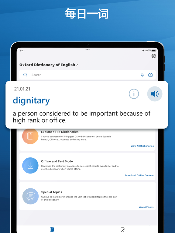 15 部最大的 Oxford 词典触手可及 由 Oxford Languages 提供支持,Oxford Dictionary 被广泛认为是当今语言研究和参考的最高权威之一。在 15 个最大的 Oxford 词典以及高级搜索和学习工具之间轻松切换和导航。 Oxford Dictionary of English & Thesaurus New Oxford American Dictionary & Thesaurus Oxford Hachette French Dictionary Oxford German Dictionary Oxford Spanish Dictionary Oxford Russian Dictionary Oxford Chinese Dictionary Oxford Paravia Italian Dictionary Oxford Hindi Dictionary Oxford English Urdu Dictionary Oxford Essential Portuguese Dictionary Oxford Japanese Mini Dictionary Oxford Greek Mini Dictionary Oxford Softpress English Bulgarian Minidictionary Concise Oxford-River Books English-Thai Dictionary Oxford Dictionary 对于在学术或专业环境中使用外语的任何人来说都是宝贵的资源: • 频繁使用英语的专业人士 • 准备 ACT、SAT、IELTS 或 TOEFL 考试的学生 • 学术人员 以及在工作或在家中需要全面而权威的词典的任何其他人。 来自英文权威机构的丰富内容 • 来自 Oxford Languages 的最新 2023 年单词数据库 • 超过 100 万单词、短语和定义 • 同义词词库 - 数以千计的同义词和反义词,可帮您区分相似词并正确使用它们 • 高品质的音频发音 • 专题参考内容 - 轻松查找专题内容 • 每日一词 - 每天学习一个新单词 用户友好的应用功能和界面 • 收藏夹列表 - 创建带有单词列表的自定义文件夹 • 最近列表 - 回顾已经查过的词 • 单词分享 - 轻松分享您刚刚学习的新单词或定义 • 主页 - 您的英语之旅的直观开始 • 自动更正选项 - 在您键入时更正单词拼写 • 深色主题 - 即使在光线较暗的环境中也能让您的眼睛放松并继续学习。 高级搜索选项 • 搜索自动完成 - 在您键入时显示预测 • 关键字查找 - 在复合词和短语中进行搜索 • 相机搜索 - 在相机取景器中查找单词 • 语音和模糊搜索 - 当您不知道单词拼写时进行查找 使用 PREMIUM 获得最大收益 发挥全球最佳词典的全部潜力: • 无限制使用词典 - 无限制访问超过 100 万个单词、短语和含义的最新数据库 • 音频发音 - 再也不会误读单词! • 离线和快速模式 - 随时随地访问丰富的单词数据库 - 无需数据连接或网络连接 • 定期内容更新 - Oxford Languages 有更新后,您就会收到单词数据库的更新 • 无广告 - 畅享无广告、无干扰的学习体验 定价和订阅 自动更新订阅条款: • 订阅按所选订阅计划的费率,每周、每月或每年计费。 • 每个订阅的价格对应的价格段,具体价格已在“Apple 的 App Store Matrix”中按各种其他货币列出 • 除非在订阅期结束前至少 24 小时关闭自动续订,否则您的订阅将自动续订 • 您可以随时在 App Store账户设置关闭自动续订,来取消订阅。此操作必须在订阅期结束前 24 小时完成,以免被收费。取消订阅将在当前订阅期最后一天的次日生效,届时您将被降为免费服务 隐私政策:https://mobilingo.ai/privacy-policy 使用条款:https://mobilingo.ai/terms-of-use在这个更新中,我们推出了一些令人兴奋的改进: * "每日单词"卡片的全新设计 * 现在您可以轻松地在词典之间切换并选择您喜欢的词典 * 数据库下载指示器得到了改进,变得更加用户友好和直观 * 错误修复和稳定性提升 喜欢这个应用吗?请给我们评分! 有建议吗?请通过support@agent.mobilingo.ai联系我们