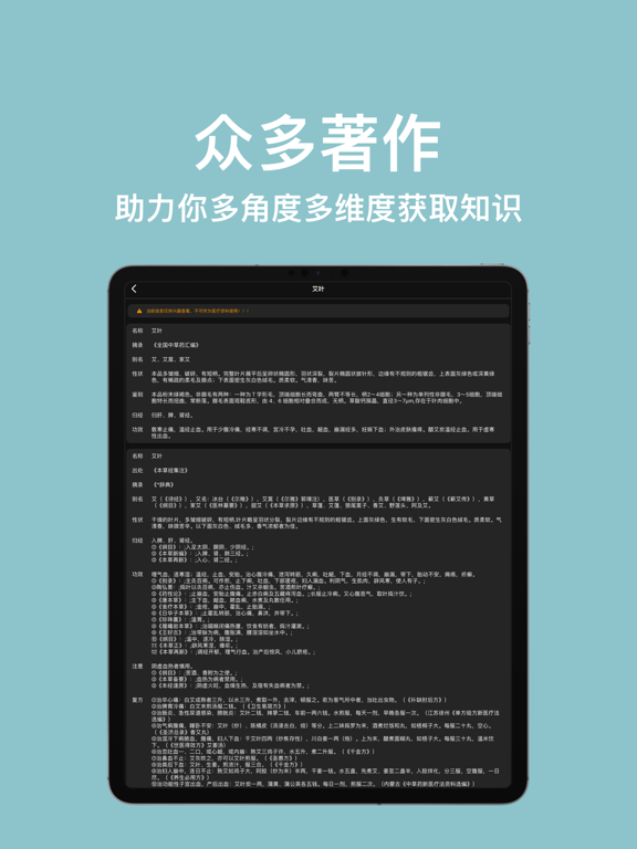 中药词典App——中医界的百科全书,您的掌上健康指南! 想深入了解中医药的奥秘?想随时随地查阅海量中草药和经典药方?中药词典App为您打造一站式中医知识平台! 海量资源,尽在掌握 18,790种中草药:详尽收录,功效主治一目了然。 60,661种药方药剂:传承经典,名方秘方尽收囊中。 1,201部医学著作:权威典籍,深入解读中医理论精髓。 AI小药童,全新上线 引入前沿AI技术,AI小药童成为您的私人中医顾问: 智能解答:实时解惑,专业中医知识随问随答。 个性推荐:根据需求,精准推荐相关药材和方剂。 学习助手:助您系统学习中医理论,提升专业水平。 中医智慧,博大精深 中医学以阴阳五行为基础,将人体视为气、形、神的统一体。通过望、闻、问、切四诊合参,探究病因病机,辨证论治,达到阴阳调和,恢复健康。 App特色功能 快速检索:支持中草药、方剂、医学著作等一键搜索,方便快捷。 每日一荐:AI小药童每日推荐精品内容,持续提升您的中医水平。 为什么选择中药词典App? 最全中医内容:市面上最丰富的中医资源,学习查阅更轻松。 专业权威保障:汇聚名家典籍,信息准确可靠。 智能便捷体验:AI小药童贴心服务,提高您的使用效率。 专业人士的选择:众多中医师、生物医学研究者的共同推荐。 学习者的福音:中医爱好者和学生的必备工具,助您快速提升。 立即下载,开启您的中医之旅! 健康从现在开始,不要错过提升自我、关爱家人的机会!中药词典App,助您领略中医之美,践行健康生活方式! 在您确认购买时和每个续费周期开始时,我们会从您的 iTunes 账户中收取订阅费用。 包含免费试用期的订阅将自动续订为付费订阅。 在免费试用期结束前至少 24 小时,您可以在 iTunes 设置中取消您的订阅或免费试用。 取消订阅将会在当前订阅周期最后一天后生效,您将会被降级为免费服务。在免费试用期内,当您订阅高级版后,任何未使用的免费部分(如果有的话)将会作废。 免责声明:本应用提供的健康信息仅供参考,不能替代专业医疗建议。请在采取任何健康或医疗措施之前咨询医生的建议。 隐私政策:https://apis.tigeroom.cn/chmedicineperson.html 用户协议:https://apis.tigeroom.cn/chmedicineperson.html 会员协议:https://apis.tigeroom.cn/chmedicinemarket.html Terms of Use: https://www.apple.com/legal/internet-services/itunes/dev/stdeula/ 建议反馈:zixi20230101@gmail.com1.优化搜索 2.优化加载速度
