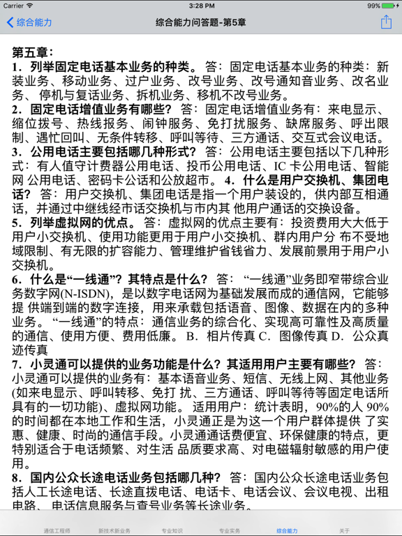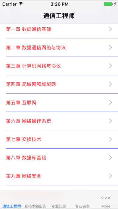 通信工程专业人士不可多得的好资料,给力推荐! 内容涵盖了通信工程专业考试所有科目总结、初级职业水平考试考前必备资料总结! 通信专业技术人员初级职业水平考试分2个科目:通信专业综合能力和通信专业实务。 通信专业综合能力考试时间为2小时,满分为100分,考试目的是检验通信专业初级人员掌握通信专业法规、现代通信技术、业务的程度以及计算机和外语应用的水平,考察其承担初级专业技术岗位工作的综合能力。考试内容包括通信管理法规与行业规章、现代通信网、现代通信技术、现代电信业务、计算机应用、通信专业外语。 通信专业实务考试时间为3小时,满分为100分,考试目的是检验通信专业初级人员掌握通信专业业务流程、业务技术熟练程度,考察其承担和解决初级专业技术岗位工作实际问题的基本能力。考试内容包括电信网、帧中继网、数字数据网、宽带交换技术、智能网、移动通信网、因特网、接入网及接入技术、下一代网络、传输网、支撑网、电信技术专业技能。 ***本应用包括了: 1.通信工程师 2.新技术新业务 3.通信专业知识 4.专业实务 5.综合能力丰富更多内容; 支持iOS 18;