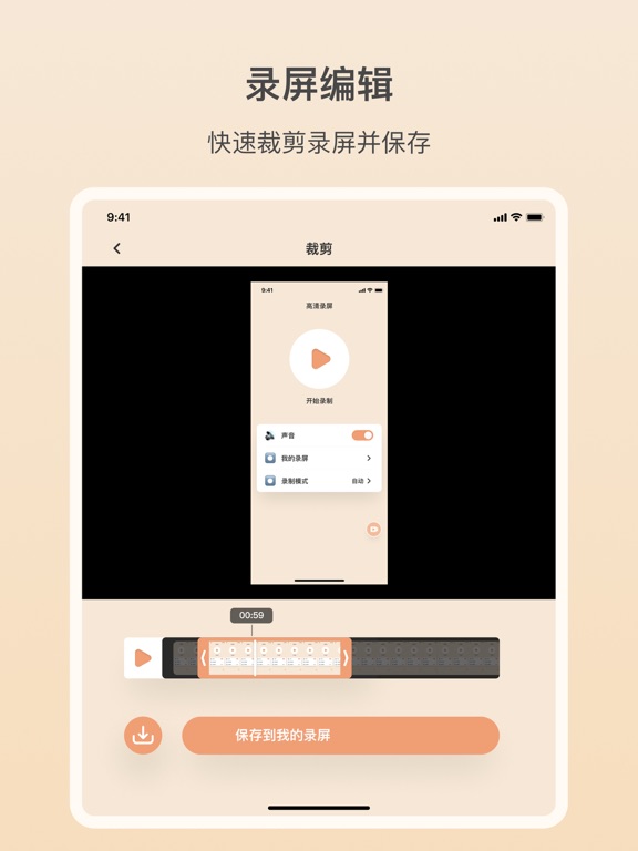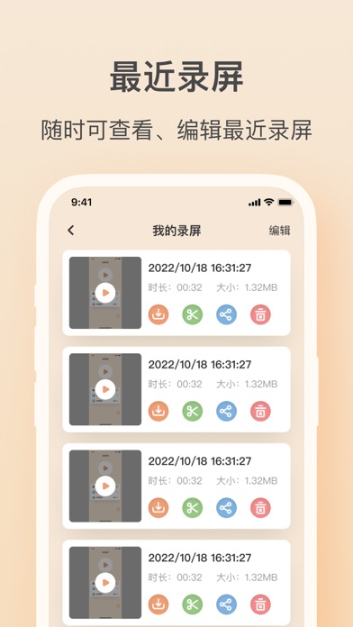 高效的录屏工具,功能强大,帮你轻松在抖音、bilibili等平台录制高清流畅的游戏视频、亲友视频聊天等各类手机屏幕视频! 优点: - 不限制录制时长! - 通过麦克风,同步录音! - 支持录制高清视频:2K、12Mbps、60FPS - 免费便捷的视频编辑! 会员自动订阅说明: -付款:用户确认购买并付款后计入iTunes账号。 -订阅将自动续订,除非您在当前订阅周期结束前至少提前24小时关闭自动续订。 -免费试用订阅将自动续订,除非在续订前24小时取消。 -免费试用期的任何未试用部分(如果提供)将在用户购买该出版物的订阅时丧失。 -苹果iTunes账户会在到期前24小时内扣费,扣费成功后订阅周期顺延一个订阅周期。 -订阅可以由用户管理,并且可以在购买后进入用户的账户设置来关闭自动续订。 -订阅可无限制的访问我们的高级功能 -隐私政策:https://www.freeprivacypolicy.com/live/b19e9eef-5ac5-4db2-956e-9bff5fb7b77d -服务条款:https://www.freeprivacypolicy.com/live/ca830c98-cce2-404f-90bc-0cb70f4f08da修复一些已知问题