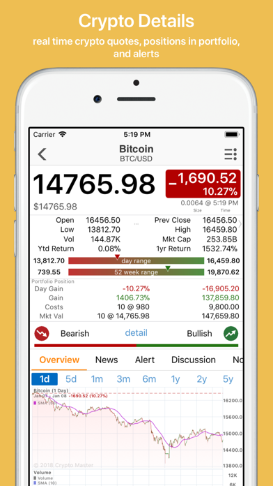 币投资为您带来简化的移动加密货币市场体验。无论您是新手加密货币用户,专业的技术分析交易者,币投资都是您不可或缺的有力工具。它具有从实时加密货币报价到可定制技术分析的所有内容。您可以设置提醒,并选择通过推送和电子邮件通知获取其信息。 === 主要加密币 Bitcoin, Ethereum, Ripple, Bitcoin Cash, Litecoin, Cardano, BTC, ETH, XRP, BCH, LTC, ADA, IOT, XEM, XMR, EOS, BTG, ETC, XLM, LSK, BCC, TRX, XVG, ZEC, BTS 更多 === 主要加密币交易所 Coinbase, GDAX, Poloniex, Bittrex, Kraken, HitBTC, Bitfinex, Coinmama, LocalBitcoins, Gemini, Bisq, Bitstamp, Bithumb, Quoine, BitFlyer, Binance, CEX.IO 更多 === 实时数据 实时数据行情, 关键指标, 价格波动提醒。实时更新比特币、以太坊等数字货币行情,有助于您挖掘投资机会。 === 投资组管理 实时追踪您的投资组, 可视化投资组盈亏, 分布与分析 === 高级自定义提醒 MACD, RSI, Stochastic, CCI 看涨/看跌 提醒 === 加密币比较 加密币比较, 图表, 细节 === 后验分析 强大的后验分析助力您寻找最有效的技术指标 === 多种列表模式 快速一键切换多种列表模式 === 社交媒体讨论 与其他投资者讨论, 有助于您快速了解瞬息变化的市场 === 交互式的高级图表 交互式的高级图表有助于您技术分析, 看涨/看跌模式识别 === Premium Subscriptions: - No Ads, all features enabled – Payment will be charged to iTunes Account at confirmation of purchase – Subscription automatically renews unless auto-renew is turned off at least 24-hours before the end of the current period – Account will be charged for renewal within 24-hours prior to the end of the current period, and identify the cost of the renewal – Subscriptions may be managed by the user and auto-renewal may be turned off by going to the user's Account Settings after purchase – Privacy policy: https://www.cryptomaster.io/privacy.html – Terms of Use: https://www.apple.com/legal/internet-services/itunes/dev/stdeula/Bug fixes and performance improvements