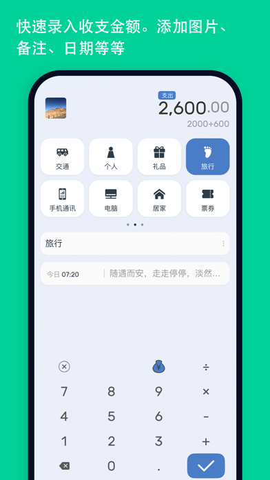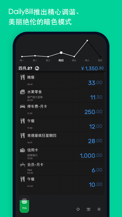 DailyBill 是一款简洁优雅的理财记帐应用。只需下拉,点击等几个简单的动作,它就能轻松为您整理好每日的开销,让您对自己的个人财务和收支情况有更详细的了解,让您的消费变得更聪明。 整个记账app操作精致伴随动效及音效。如果您喜欢极简模式可以在设置中心随心关闭或打开。 重点是:我们绝对不会搜集您的私人信息,也不会做与记账无关的功能。 记账不止是记录个数字,同时还可以拍摄定格的瞬间,写下美好的事物。 图表的展示不仅可以按 日/月/年 时间段统计,还可以自定义任意时间。 分类预算让你更好的控制自己的消费情况,做到心中有数。 ••• 主要功能 ••• ○ 完美支持云同步和云备份 ○ 预算设置,告别剁手党 ○ 靡丽易读的扇形统计图/折现统计图,屏幕竖屏都能看 ○ 可添加、编辑、删除、排序的分类 ○ 密码解锁(支持指纹或面容解锁) ○ 白天/黑夜、壁纸主题切换 ○ 记录支持CSV文件导出 ○ 简单并且流畅的手势交互体验 ◈ 小贴士 ◇点击【钱袋子】可切换收支模式 ◇点击首页折线图,可显示或隐藏当天收支情况 ◇点击省略号文字可以显示完整内容 ◇首页左右滑动可以切换当前日期,日历选择也可滑动 ◇滑动任意一个分类项可以进行编辑该分类,修改自动更新历史数据 ◇长按分类可以进行排序 ◇横屏查看统计图表,首页摇一摇也可以哦 ------------------- DailyBill高级版(Pro Subscription)是自动订阅的形式的,提供按月订阅。 价格为 ¥6 每月(连续包月) 。 价格可能会因为地理位置的不同而不同。确认购买时会从您的 Apple ID 帐户扣款。除非您在当前订阅期结束前至少 24 小时取消订阅,否则订阅会自动续订。系统会在当前订阅期结束前 24 小时内,从您的帐户扣除续订费用。完成购买后,您可以前往 App Store 的帐户设置来管理和取消您的订阅。 你可以购买“永久”来一次性买断或者通过按月订阅的方式。两者享有相同的功能。 隐私政策: https://github.com/JRJian/db_privacy/blob/master/README.md 服务条款: https://www.websitepolicies.com/policies/view/N8mjYtpC ------------------- DailyBill是由一个热爱生活热爱记账的苹果开发者利用业余时间独立设计和开发完成的。 匠人匠心,择一事,终一生。 反馈: --- 邮箱地址 szsb_jian@outlook.com修复iOS17图片无法选择问题。